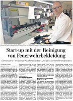Hardegser MeyerundKuhl Spezialwäschen GmbH limpia e impregna la ropa de exterior para clientes de toda Europa. El Göttingen Tageblatt informa sobre el éxito de la puesta en marcha, con la que recientemente hemos desarrollado un procedimiento de prueba para la descontaminación del amianto de la ropa de bomberos.